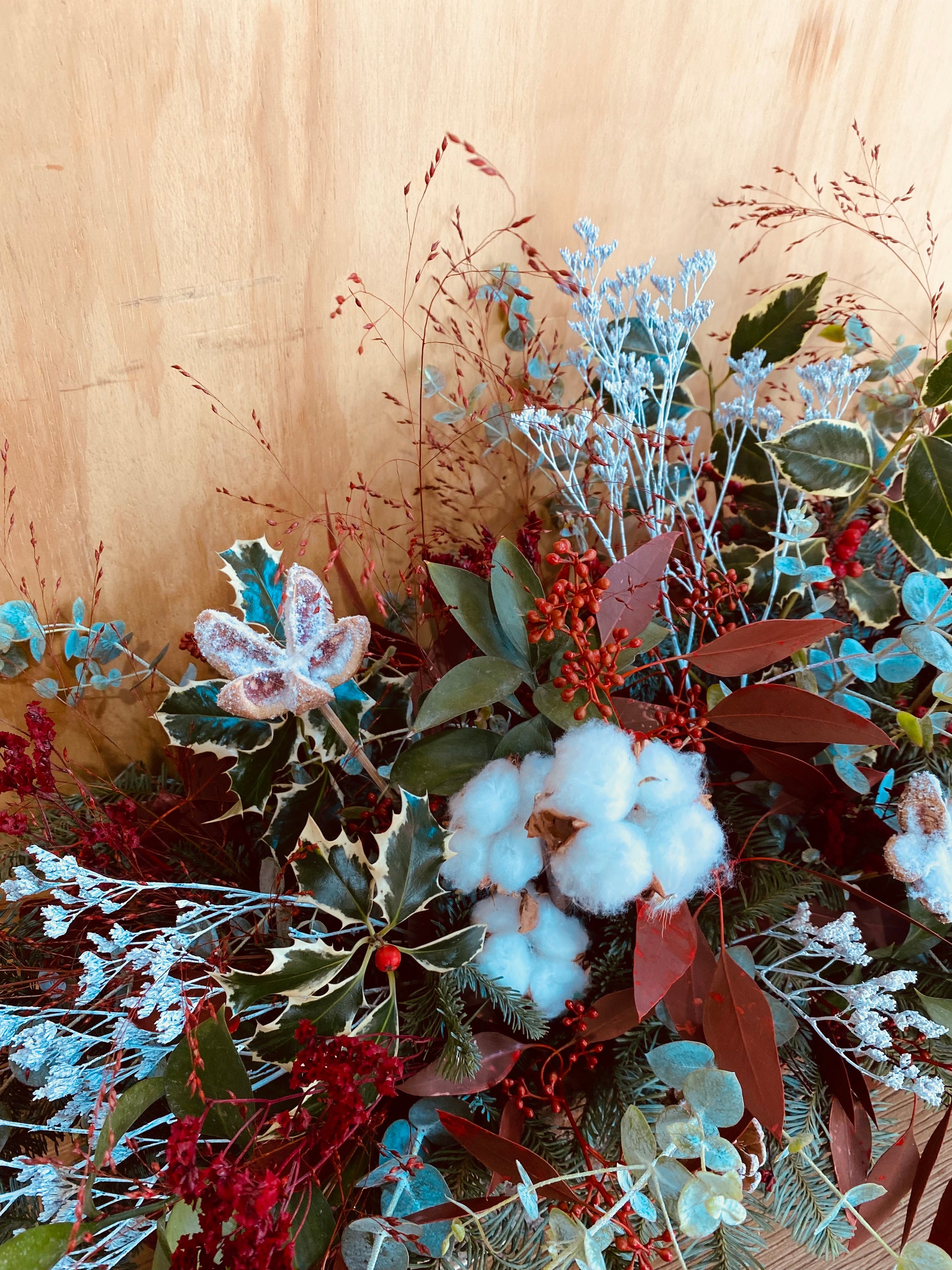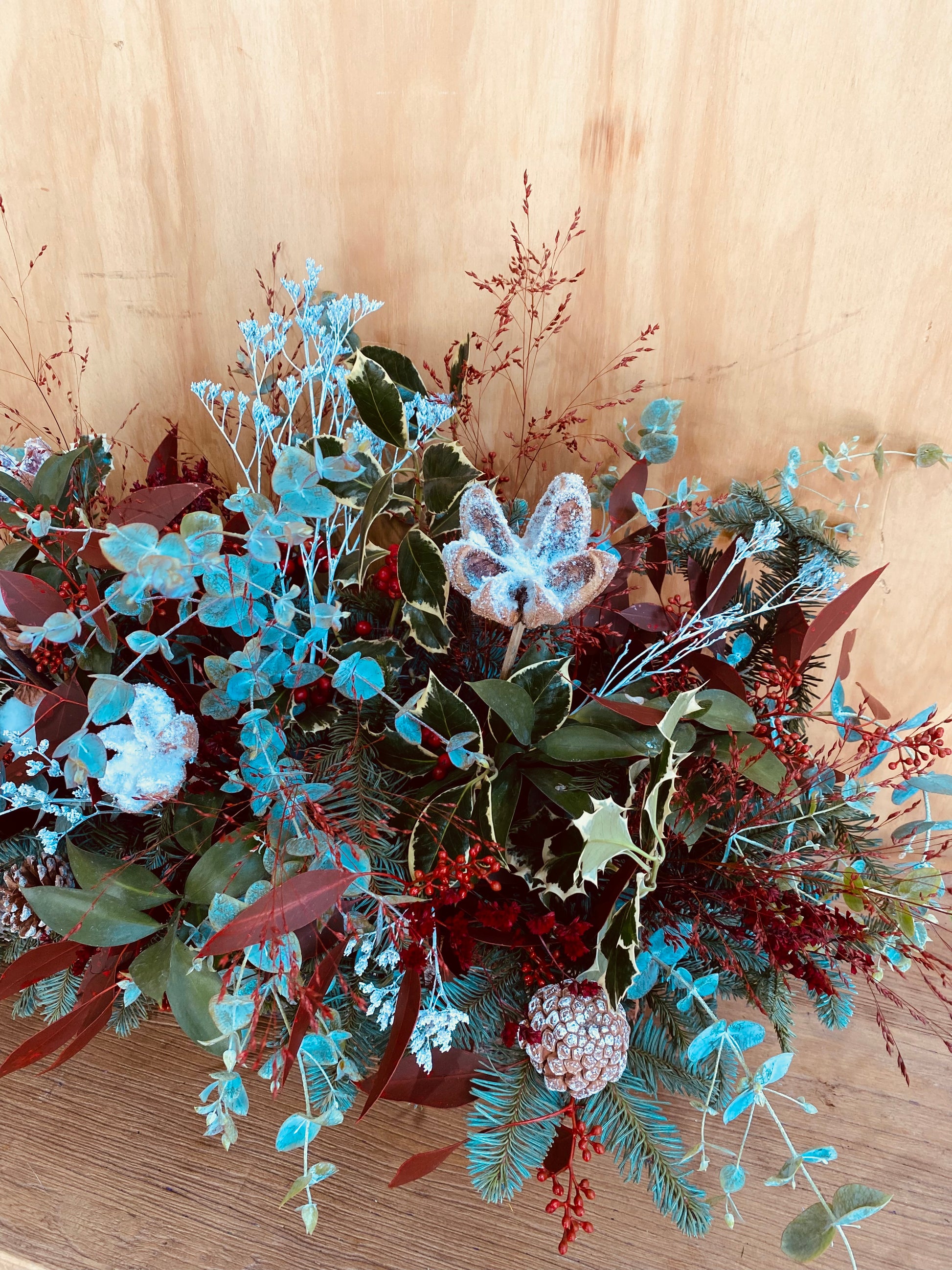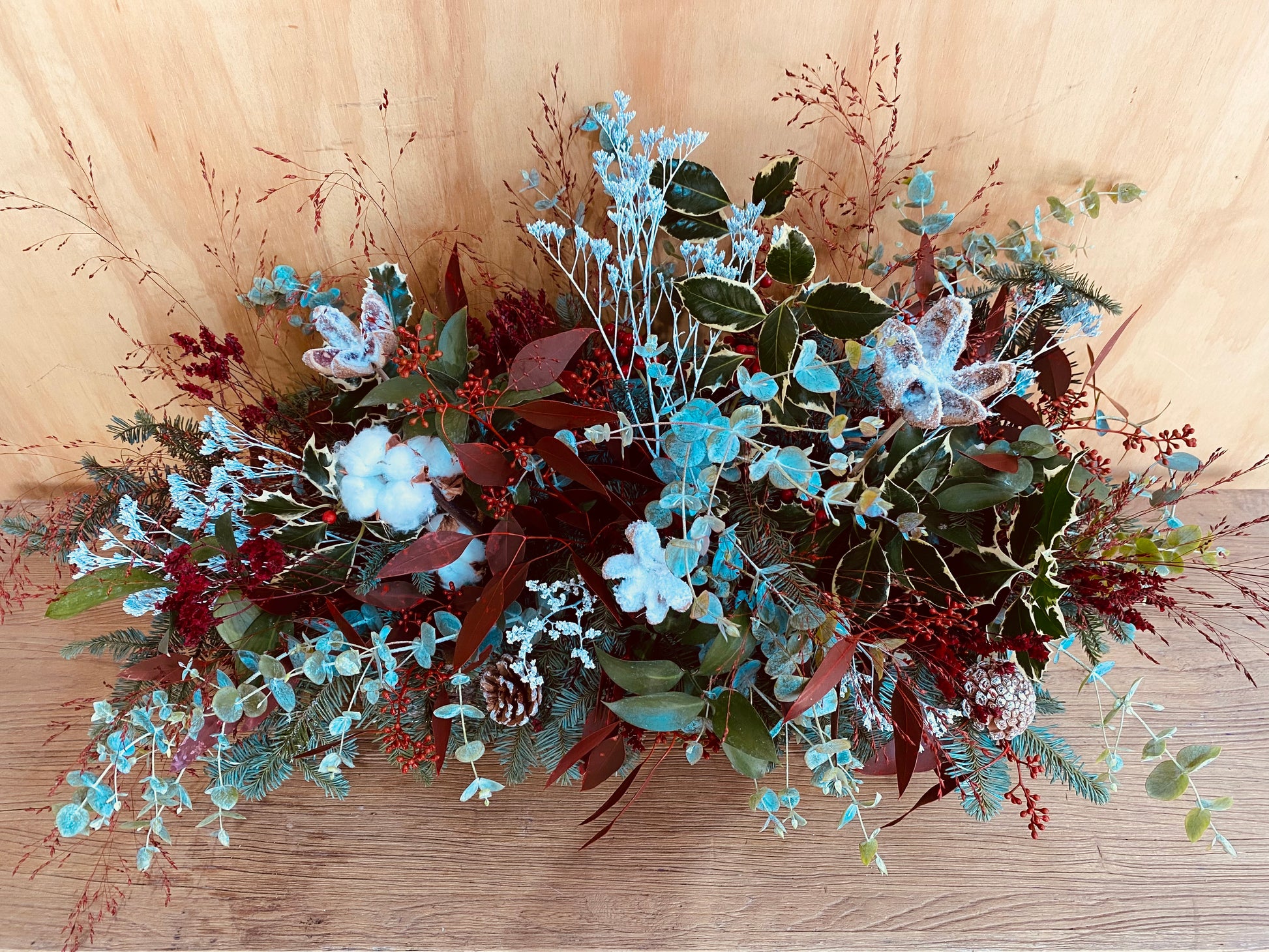 Dimensiones de la composición incluida cesta, 60cm de largo, 20cm de ancho y 40cm de alto