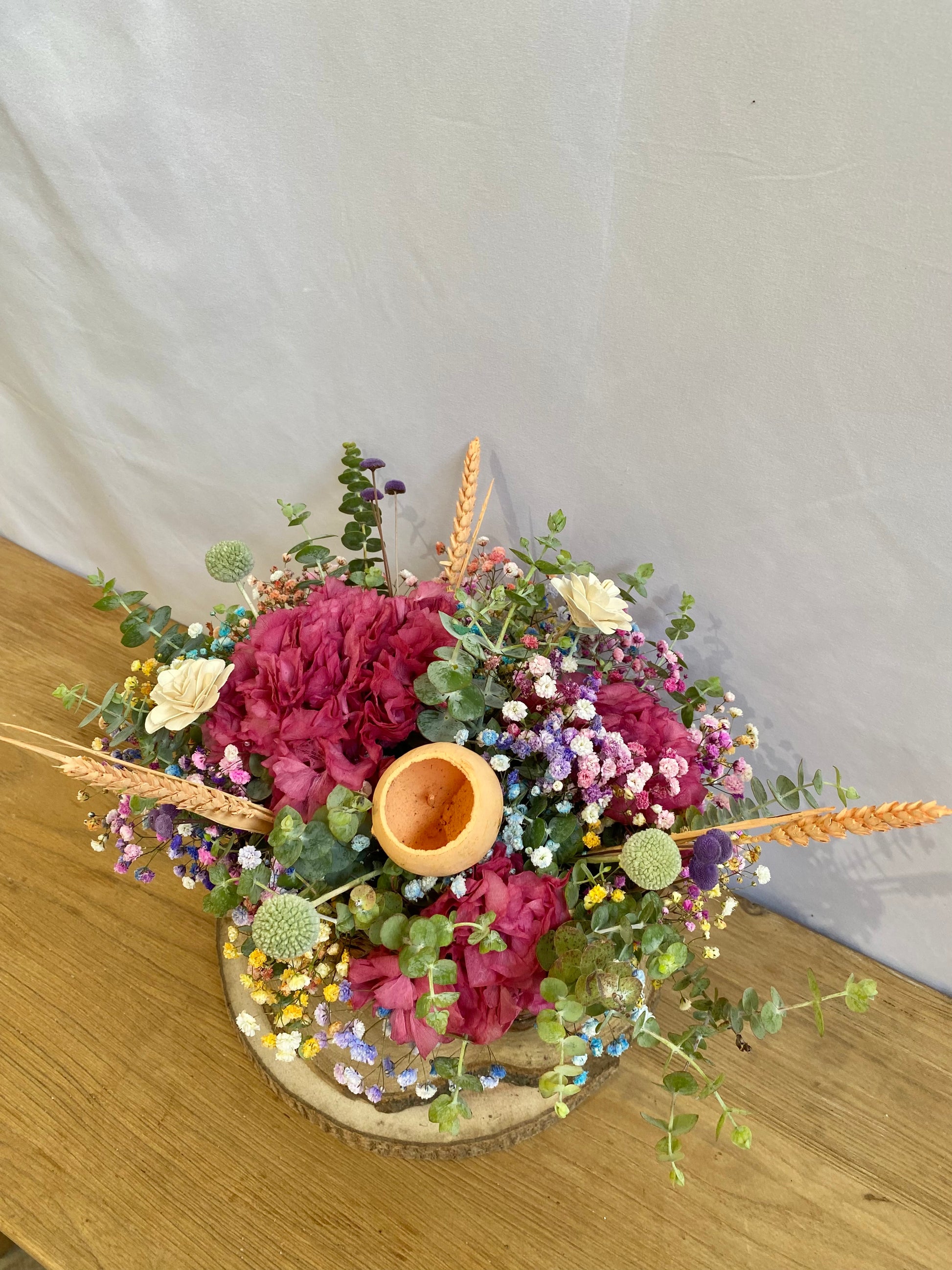 Dimensiones de la composición incluida cesta 40 cm de diámetro y 30 cm de alto.