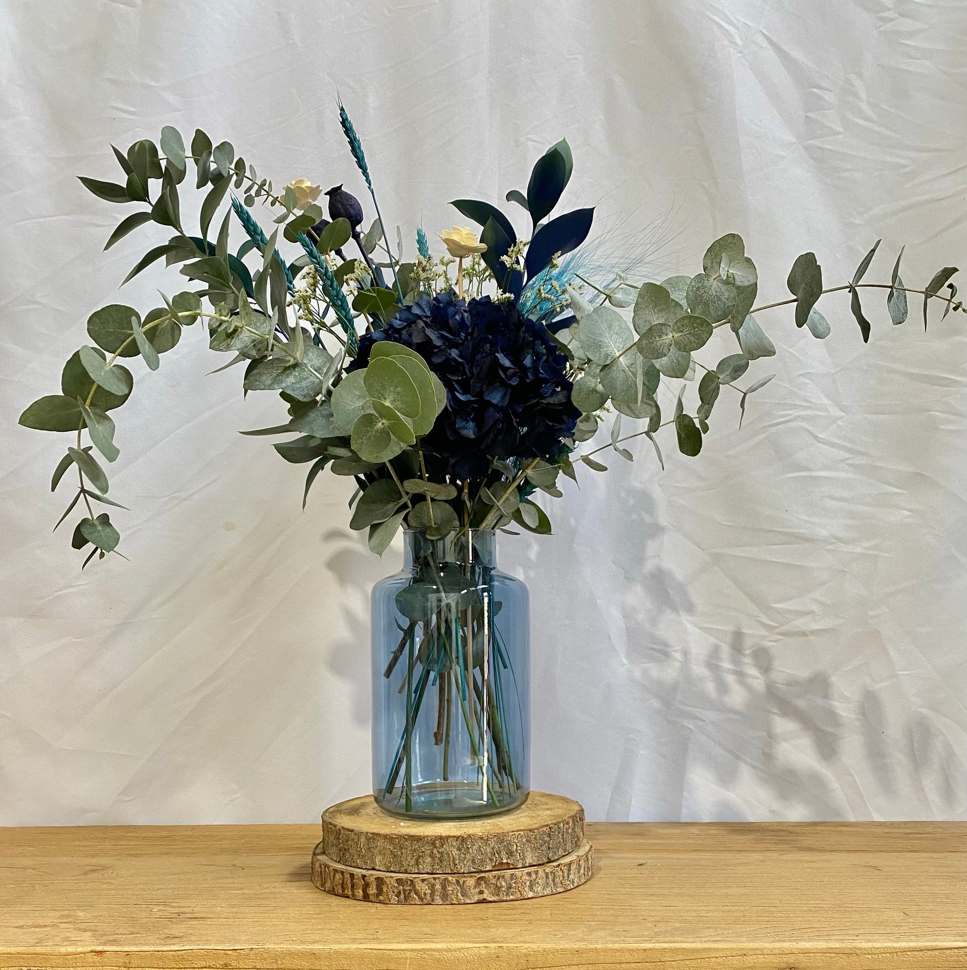 Jarrón decorativo de cristal transparente de color azul. Una composición elegante que aportará serenidad a tu hogar