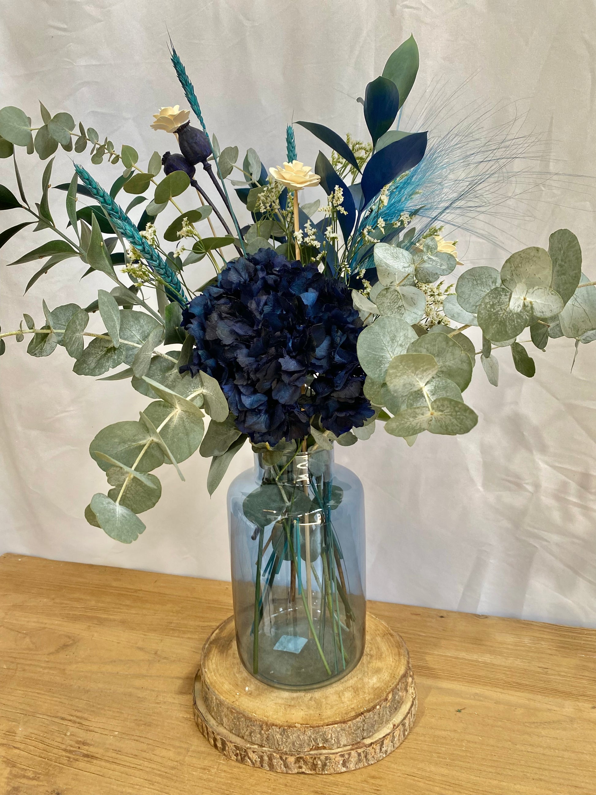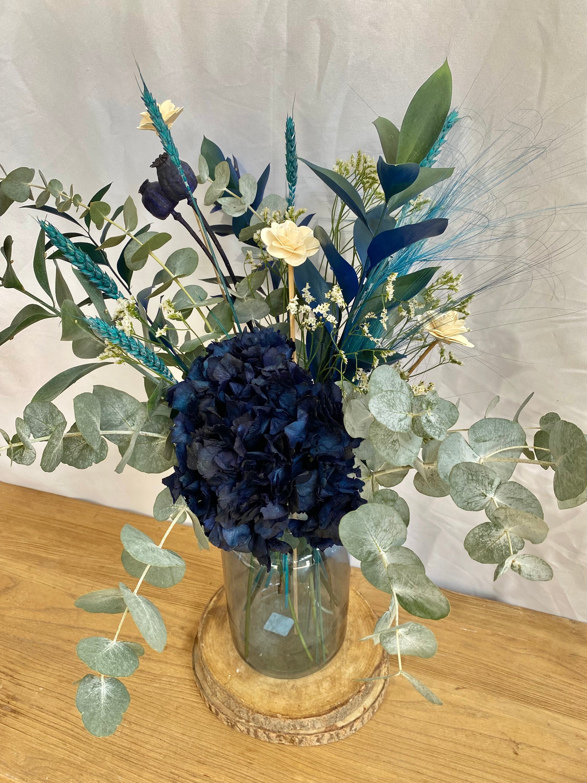 Dimensiones de la composición 30 cm de diámetro por 50 cm de alto, incluido el jarrón.